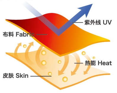 熱感纖維內(nèi)含阻止紫外線之粒子,在陽(yáng)光下具有極佳的抗UV效果。